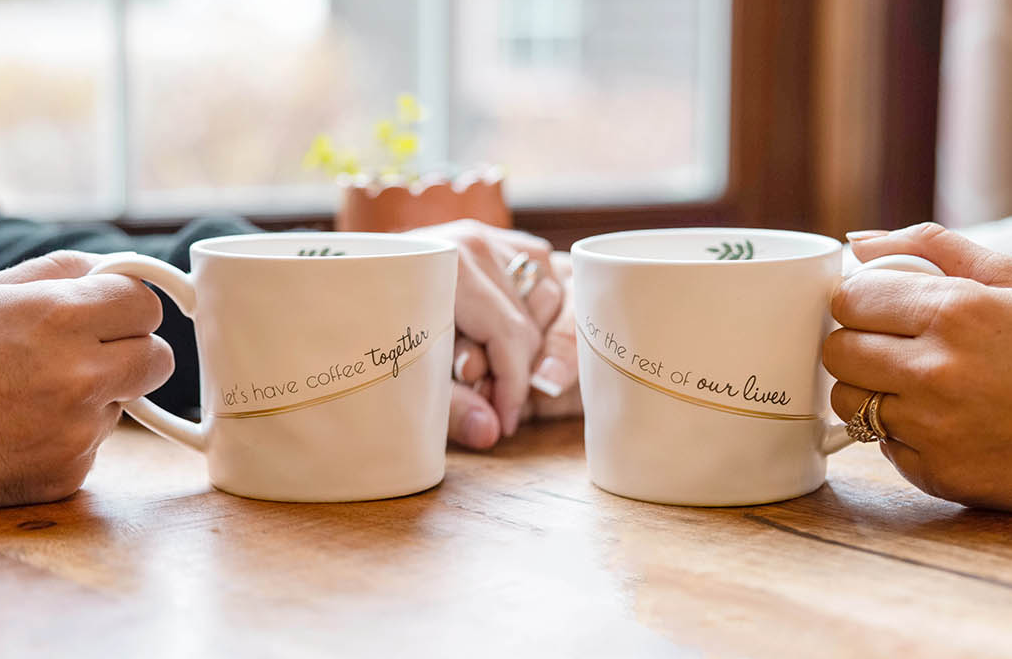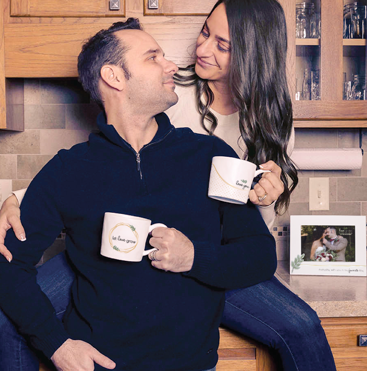 Love Grows is a wedding line I created from initial concept design through specification and mass production for Pavilion Gift Company. I wanted to create a simple yet sophisticated line featuring hand drawn gold highlights and a watercolor green leaf design to signify growth in both life and love. This product line features dimpled handmade stoneware with eye-catching iridescent glazes. My own wedding was the inspiration for Love Grows and features both my husband and I as models for photography as well as utilizes our own wedding photos as the picture frame inserts. My responsibilities included designing the logo/style guide, product mockups, and providing the factories with detailed production specifications and artwork instructions. I also assisted in editing catalog photos for this line.